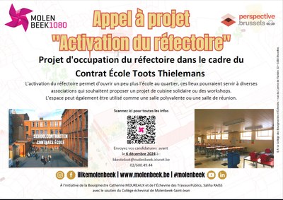 Dans le cadre du Contrat École Toots Thielemans nous sommes à la recherche d'associations motivées à répondre à l'appel à projet "Activation de la salle du réfectoire"